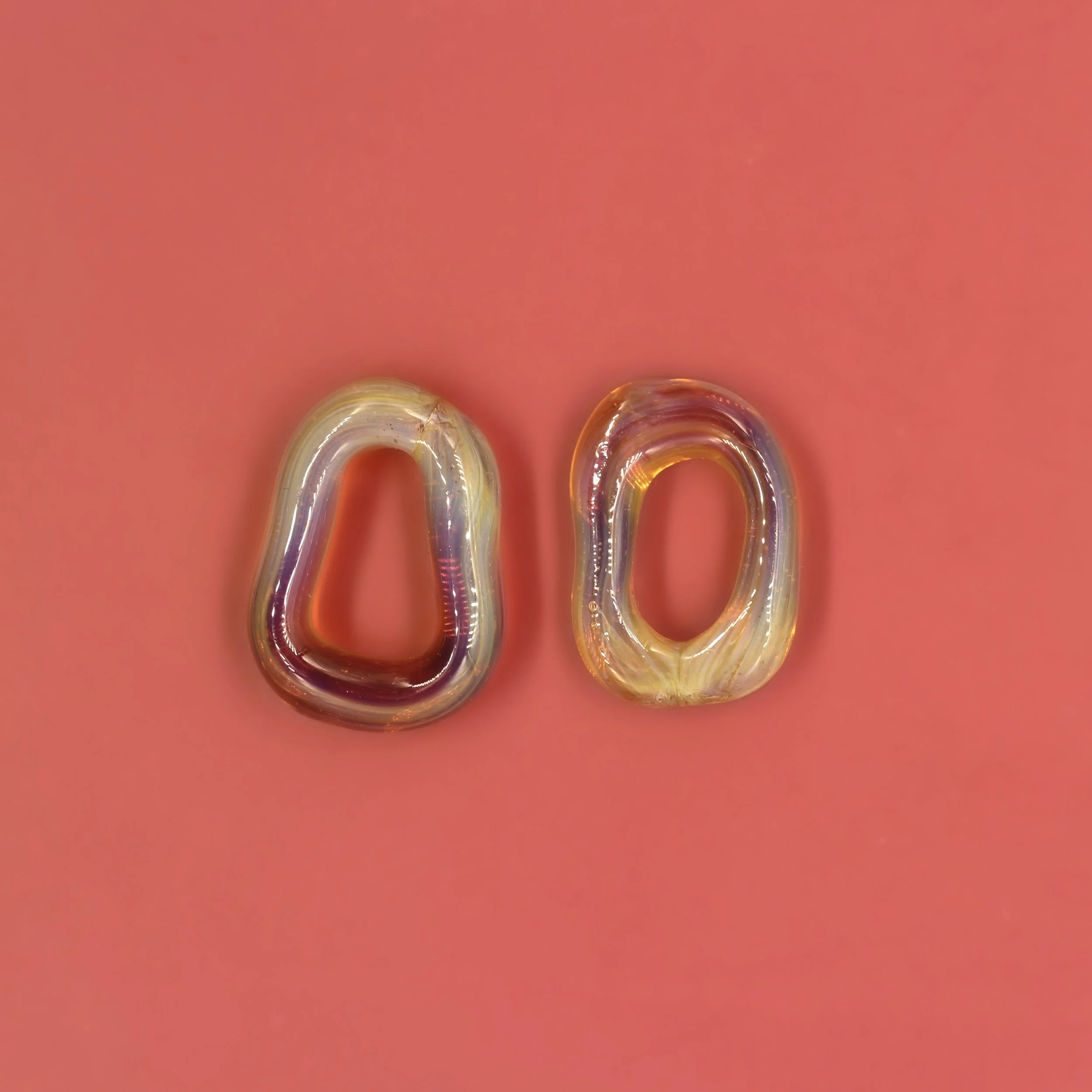 Modular glass earrings to elevate everyday hoops. Easily change out the coloured loops to mix and match, or accessories with your look. These glass hoops are all individually flame worked, shaping rods of glass into loops.